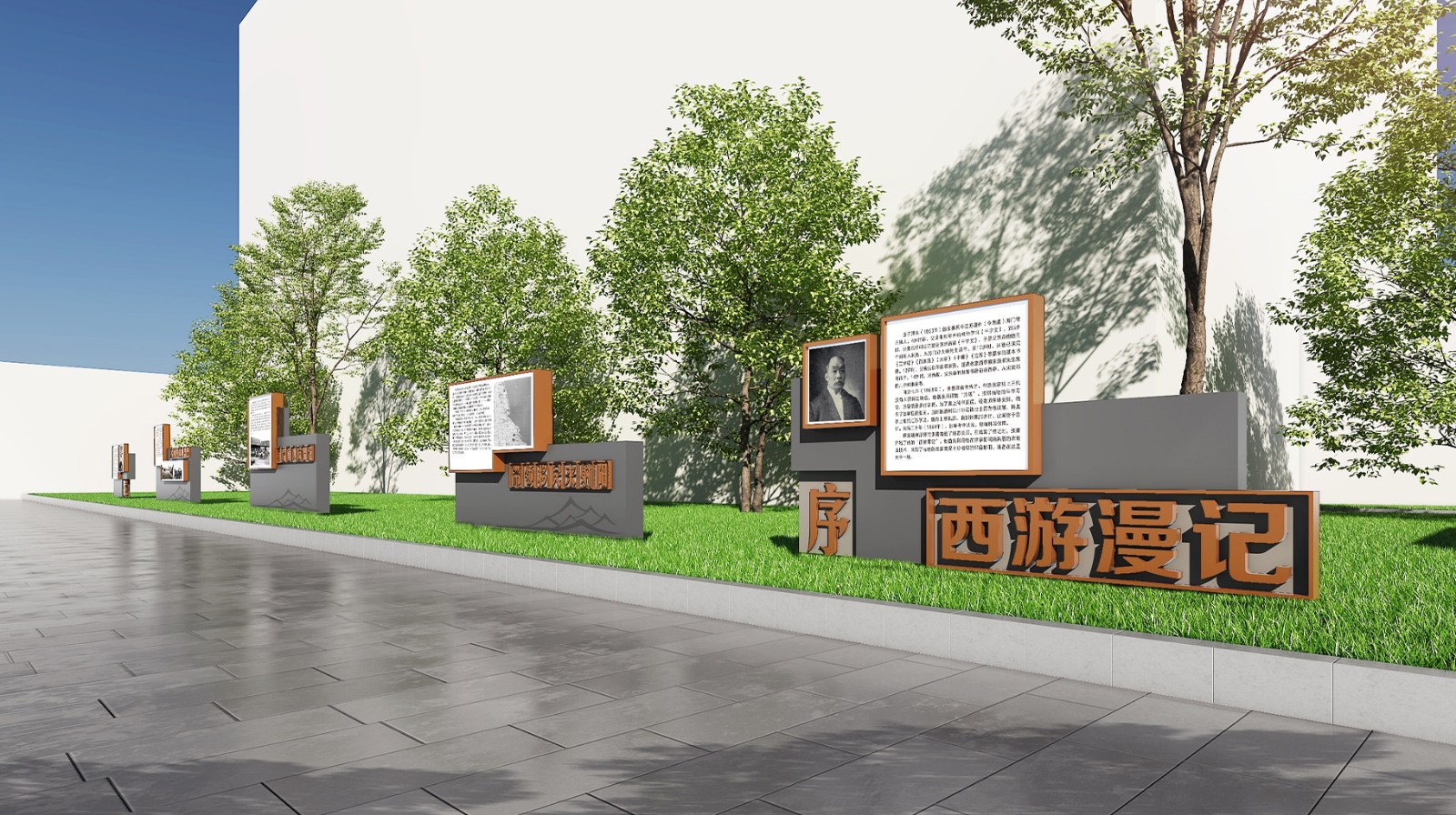 嘉尧设计团队在充分对现场勘察对接后,认为在不破坏现有环境的前提下,为主背景墙打造极具功能性的主题文化景观,体现射阳海都地方文化意象;同时结合学校需求,亦可进行小舞台的搭建,开展户外展演等活动。